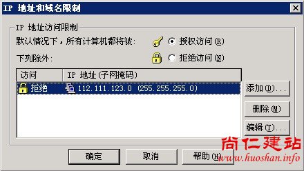 windows主机IIS限制IP访问方法: