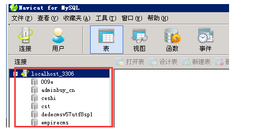 六、双击左侧“连接”栏内新建立的连接,就会出现mysql中所有的数据库了