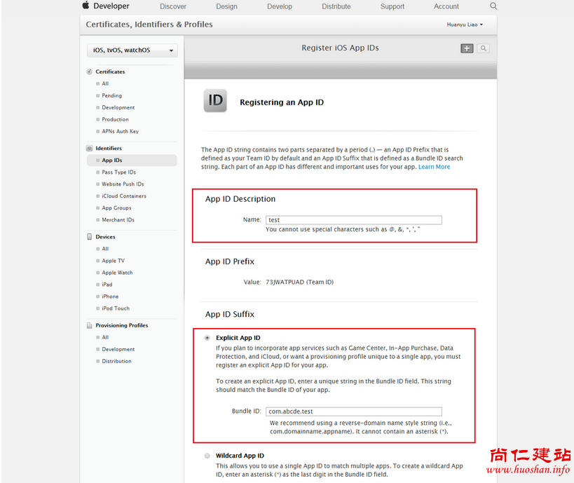 App ID:用于标识一个或者一组App,App ID应该是和Xcode中的Bundle ID是一致的或者匹配的。