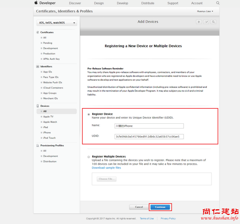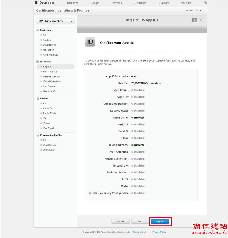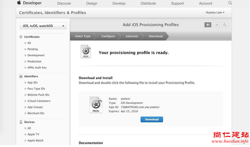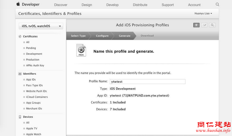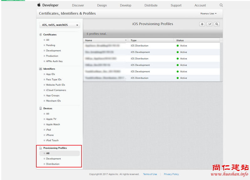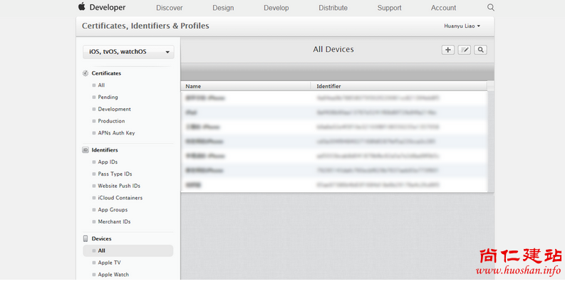Devices:包含了该账户中所有可用于开发和测试的设备。
