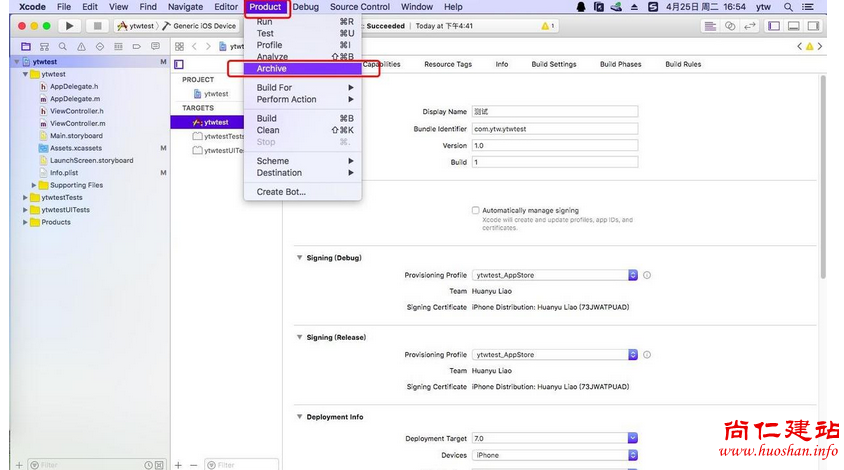 选择 Produce -> Archive。