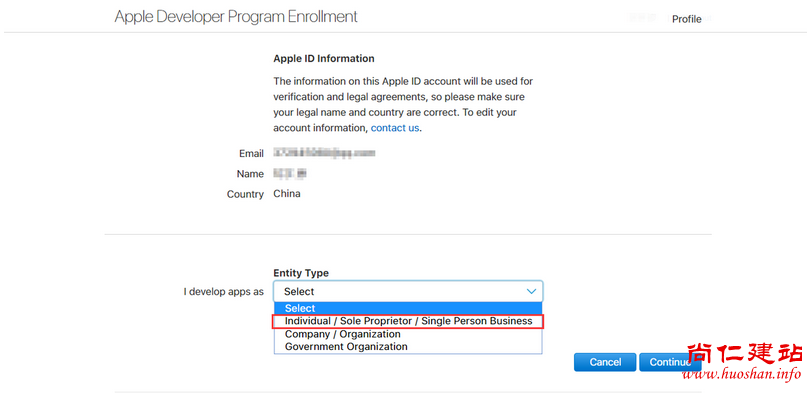 根据需要选择账号类型(个体、公司、政府组织)。