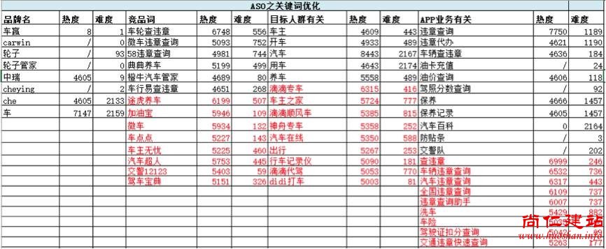 另外,补充关键词时一定要遵循上文提到的几个要点:品牌相关、竞品相关、目标人群相关、业务相关等等。补充之后的关键词库如下(红色为新增词):
