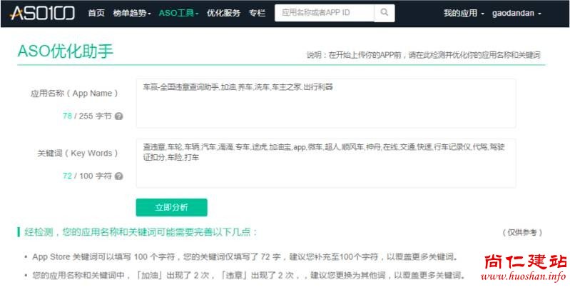 ● ASO100:ASO优化助手工具,检查你的标题和关键字是否超字符;