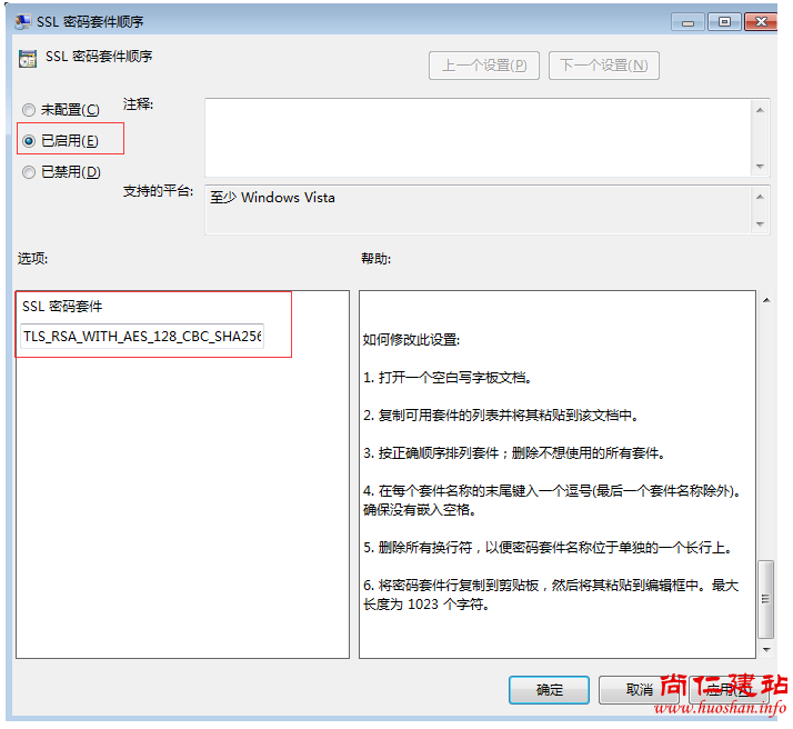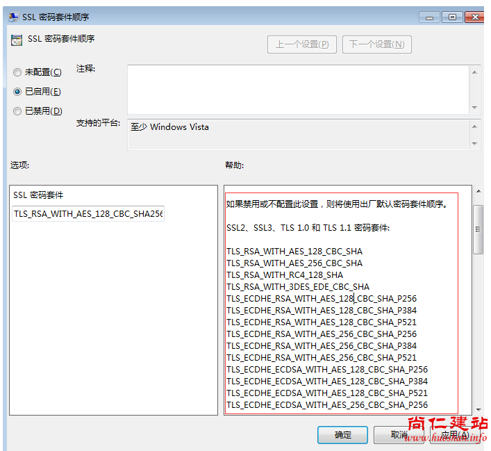 开始菜单——运行、输入gpedit.msc 进行加密套件调整 在此操作之前需要先开启TLS1_2协议