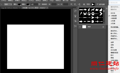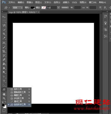 二、新建的画布为背景画布,按组合键Ctrl+j新建一个图层——“图层1”,点击左侧工具栏的“自定形状工具”;