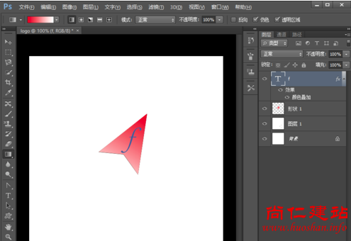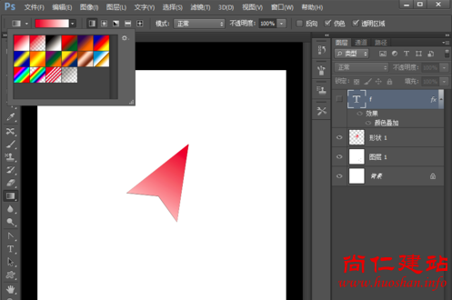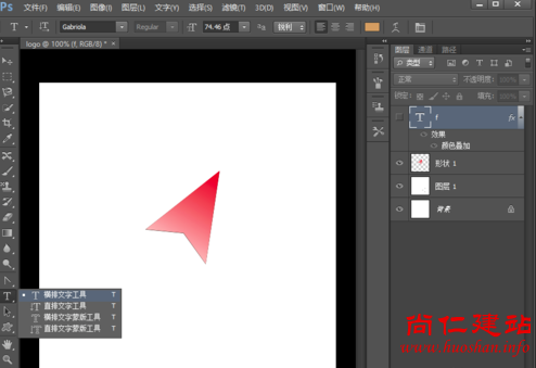 七、在简单的图形处理完后就是文字的输入及处理,先点击左侧工具栏的“横排文字工具”进行文字的输入,文字输入后的角度、大小等的处理也是按组合键Ctrl+t进行处理;