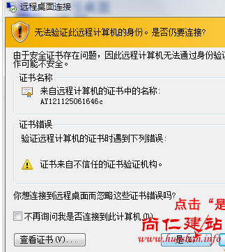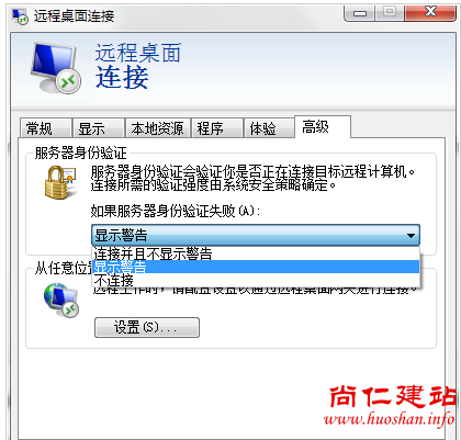 不连接:使用此选项,如果远程桌面连接无法验证远程计算机的身份,则无法建立连接。)