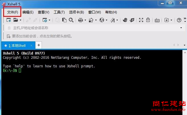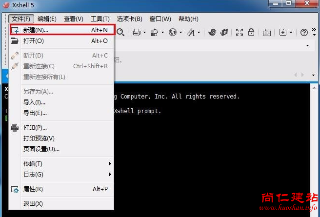2.打开xshell后找到左上角第一个“文件”点击,弹出来一个下拉框,选择“新建”点击(或者直接按下快捷键“Alt+n”)。