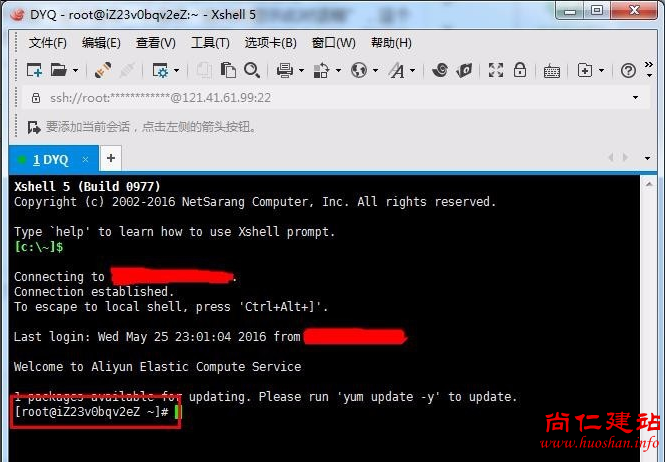 6.连接之后出现如下界面中的[root@******]样式的,就证明连接成功了。