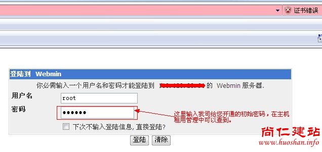 2、登录页面输入账号root,密码就是您VPS或者服务器的初始密码(可以在业务管理—主机租用管理查到)登录,如图: