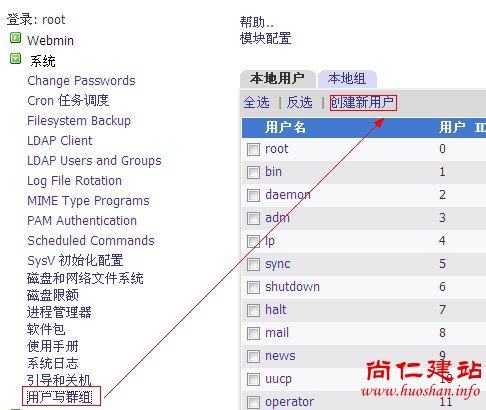 a、首先建立用户,点击左侧的“系统”—“用户与群组”,然后点击右侧的“创建新用户”如图: