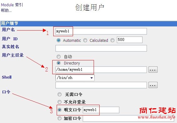 b、输入用户名、用户主目录(一般是在/homex下)、密码。如图: