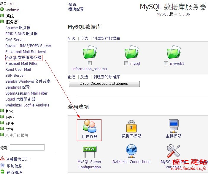 c、点击“服务器”—“mysql数据库服务器”—“用户权限”,如图: