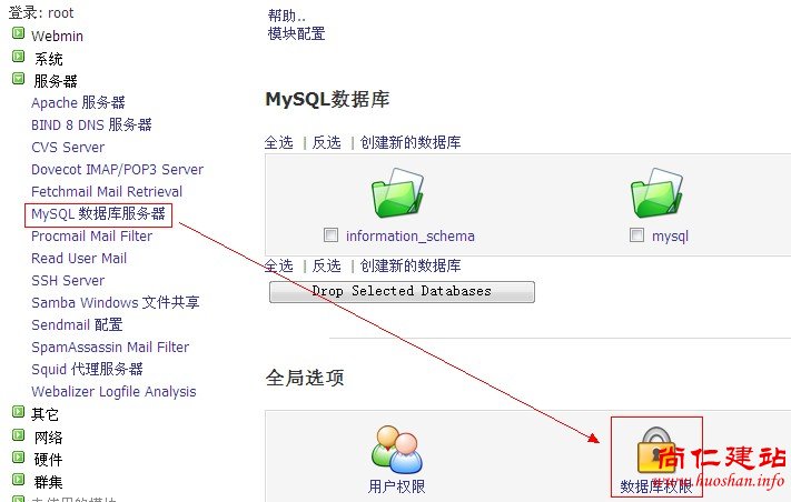 f、点击“服务器”—“mysql数据库服务器”—“数据库权限”,如图: